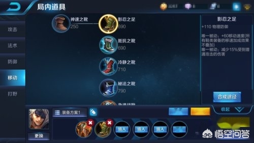 接下来是完善鞋子了。第一件已经出了神速之靴,接下来就要看对面的阵容了。如果是射手、刺客等物理伤害的英雄比较多,那么可以提供110点物理防御的影忍之足就是不错的选择。相对的,如果敌人的法师或者是硬控的英雄比较多的话,小编就要推荐抵抗之靴了。不仅有110点法术防御,而且能够减少被控制的时间,从而能够更快的投入到战斗中去。
