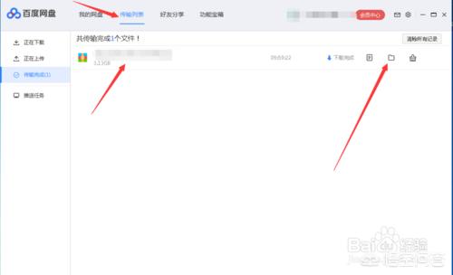 通过点击传输列表查看我们下载过的文件,通过点击文件后的文件夹按钮即可打开我们下载的文件保存路径,如图所示。