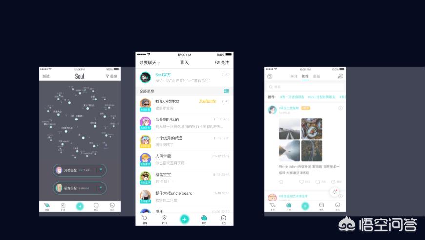 NO2:(SOUL)文艺青年聚集地,SOUL整体环境很干净,匿名匹配,聊得来就可以互相关注,聊不来,反正你又不知道我是谁, 可以在上面尽情放飞自我, 还有声音很甜的小哥哥,小姐姐在上面唱歌,。