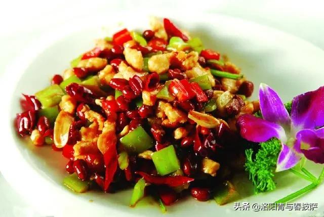 由来:当年丁宝帧由山东调任四川巡府,当时正直都江堰水患,他便急促前往都江堰视察。可是午饭时辰已过,就随便在路边一家小餐馆进餐,谁知用餐时辰太晚,店家的菜已经卖光了。可是很多人饥肠辘辘,来不及去别家餐馆,于是小店厨师用鸡胸肉等几种原料,快速炒炒了事。丁宝帧也许太饿,吃着感觉味道鲜美,打心里很是满意,因为当时丁宝帧是官府的名人,而又仓促做成并食用没有名字。丁宝帧并命名这道菜为“宫保鸡丁”。从此就大出其名了,后来大小餐馆更是改进味道,加入花生仁,等等食材,以前的宫保鸡丁是纯鸡肉做成的,没有其他食材。。