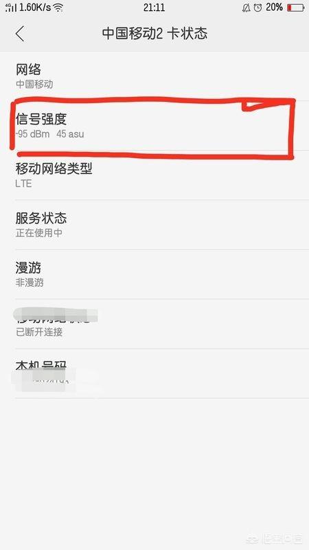 04 这时你就可以看见自己手机信号的强度。