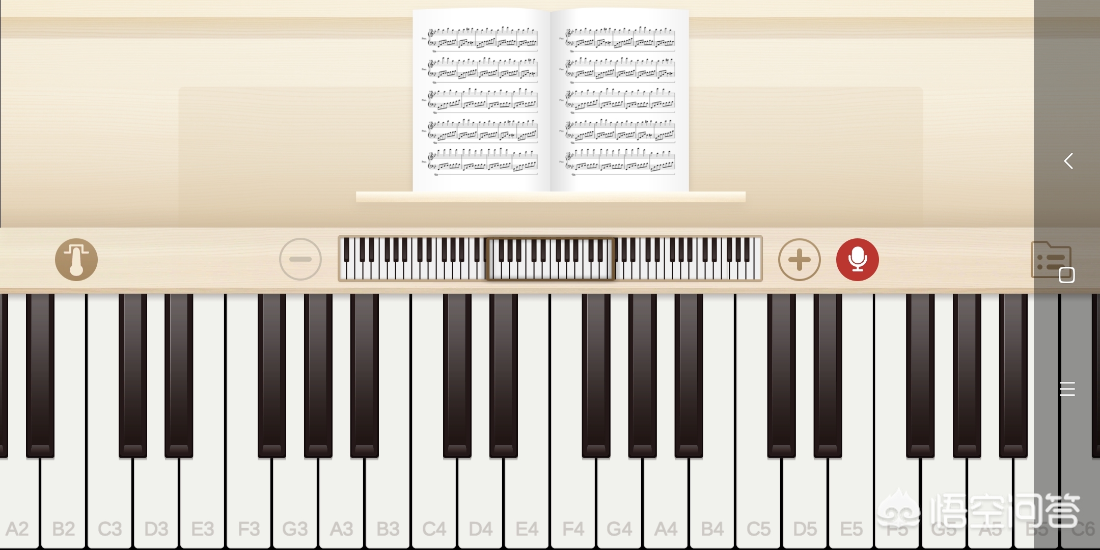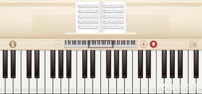 在钢琴界面中有 “-”以及“+”这两个按钮,点击这两个按钮是可以来调节钢琴键盘模拟器中的黑白键盘的大小比例。在弹奏曲子的时候,还可以选择“录音”按钮,将弹奏的曲子进行录音下来。