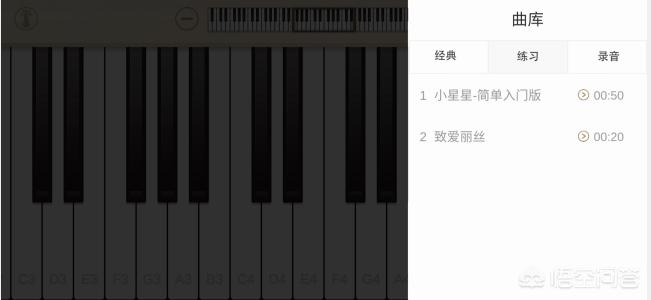 点击右上角的文件夹就可以进入到钢琴键盘模拟器界面中的“曲库”中,有经典曲子和练习的曲子可以进行弹奏。