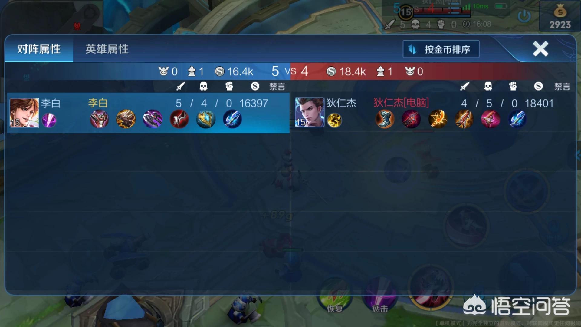 玩单机游戏的话无非就是手机没有网络,或者给小孩子玩,,一般的单机游戏都是免费的,不需要花钱买,,我刚刚打了一把王者荣耀单机游戏,铭文满级,全英雄可以玩,唉,不过,说来惭愧,竟然输了,我用李白,我李白就玩过几局而已,很菜,,刚开始纯输出装备根本扛不住狄仁杰1技能和2技能,直接被秒,,后来出半肉还可以,,到最后就出了一件黑切,其他全肉,其实可以吊打狄仁杰的,只是太浪了,半血没打过狄仁杰,然后就被推了水晶,,