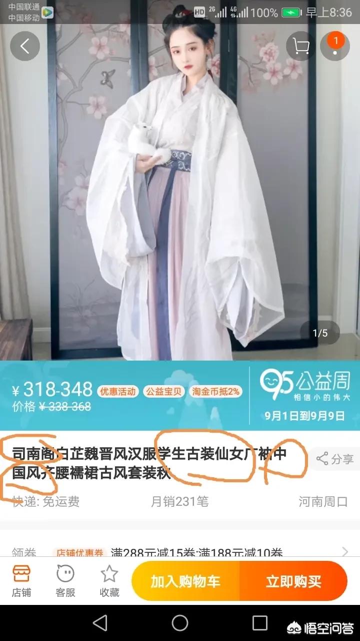 3.看商品标题,出现了“仙女,仙气,古装,演出服,COS,学生”等字眼的都是山,原创汉服一般会标“原创,非古装”