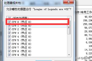 3在设置相关性界面中,我们可以看到当前已有的CPU数量,我们将CPU全部取消,只留下CPU0然后点击确定,切换回游戏。