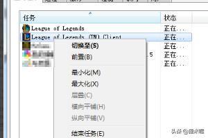 1其实我们LOL fps低并非是显卡的问题,众所周知LOL对显卡的要求并不高,我们配置足够后,却依然很卡,那么就可以尝试这个方法来解决LOL fps值低的问题,首先我们打开任务管理器,找到LOL进程右击。