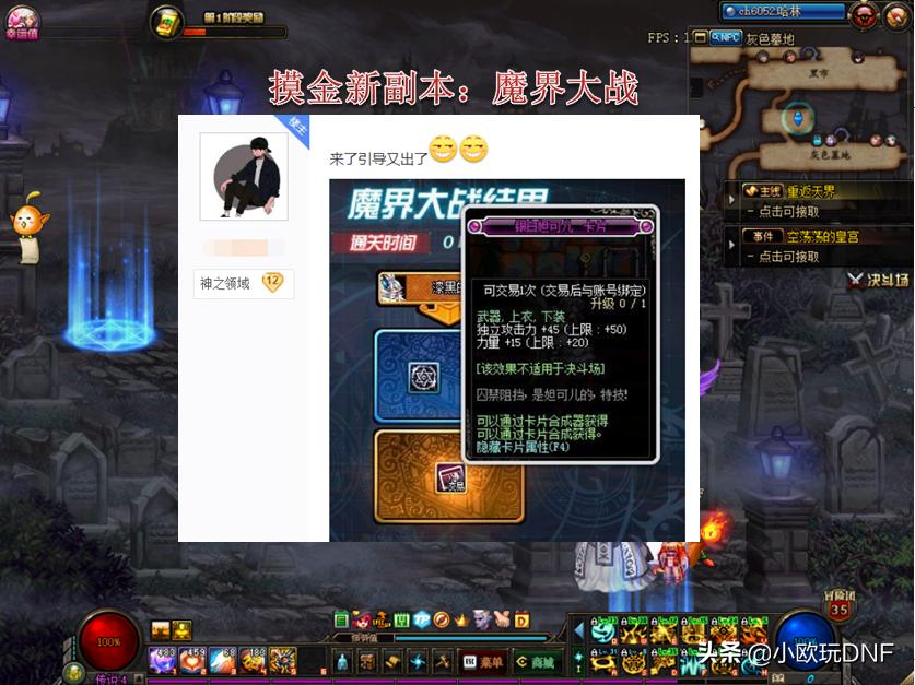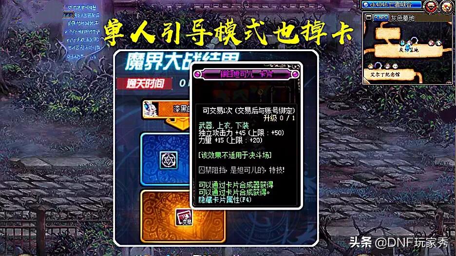 虽然魔界大战中想要出卡片并不是那么容易,但是还是可以用小号去摸金,虽然单人引导模式的奖励是最少的,但是门槛却是最低的,只需要一套简单打造的哈林装备,就可以做到快速通关。