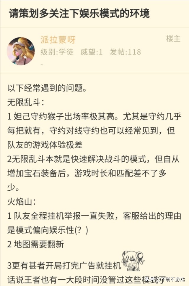 另外,现在的娱乐模式确实游戏环境堪忧,特别是无限乱斗和火焰山模式,都属于快节奏,喜欢速战速决的玩家肯定把他作为练习英雄的首选,可以迅速得知练习英雄的强度和上线,不过大家也都知道,现在这种娱乐模式已经没有行为监控功能,即使玩家违规,也不会受到处罚,所以便出现了不少众多发广告的玩家,这会让其他玩家的游戏体验更加不堪。