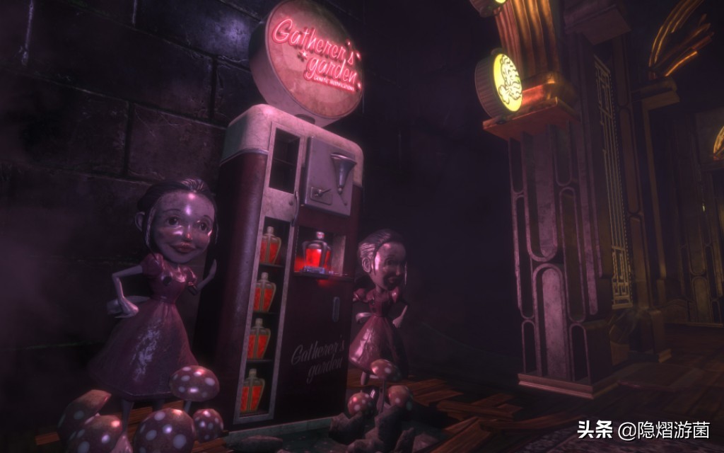顶级的声音刺激着你的神经,Bioshock充分利用了”画外音“,聒噪的自动售货机、Big Daddy沉重的脚步和呻吟、Adam过量的疯子的胡言乱语、场景里物体碰撞发出的声响,使得游戏的氛围如此真实可信。