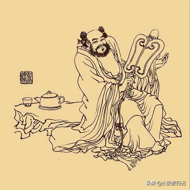 汉锺离,是个闲散的汉字,他常常是袒胸露乳,手摇棕扇,大眼睛,红脸膛,头上扎了两个丫髻,神态自若。他受铁拐李点化,上山学道。下山后又飞剑斩虎,点金济众,再度化吕洞宾之后,升天而去。