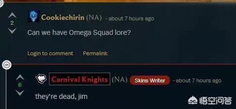 在这次的论坛问答中,Carnival Knights也是回答了众多玩家的一些疑问,其中欧米伽小队就是一个,是否会得到一个以他故事为背景的创作呢,因为在此前已经推出了多款皮肤,包括提莫,小炮,老鼠,小法师和小鱼人。但是官方的设计师也是给出了回复,表示欧米伽小队已经全部牺牲了,这让很多的玩家十分的心疼。