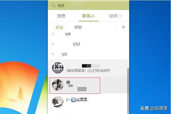 2、进入QQ之后,在联系人页面中找到想要留言的好友。