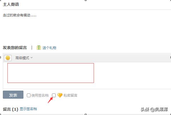 5、在留言框里编辑好留言内容之后,勾选“私密留言”,然后再点击“发表”即可。
